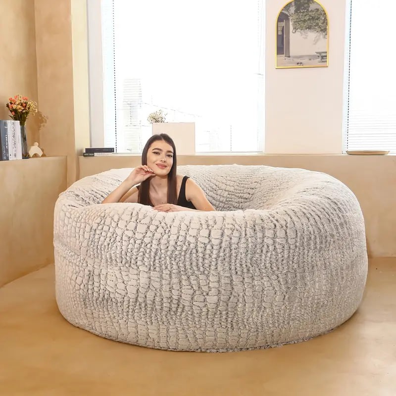 1pc crocodile pattern bean bag chair cover large circular soft pv velvet fluffy cover for living room bedroom office home decor without filling details 01pc crocodile pattern bean bag chair cover large circular soft pv velvet fluffy cover for living room bedroom office home decor without filling details 0