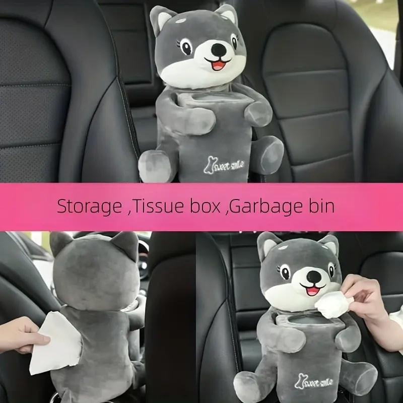 1pc Cute Car Interior Accessory, 2 Functions, 2-in-1 Car Tissue Box, Car Trash Can