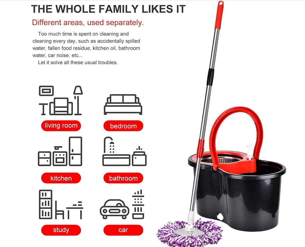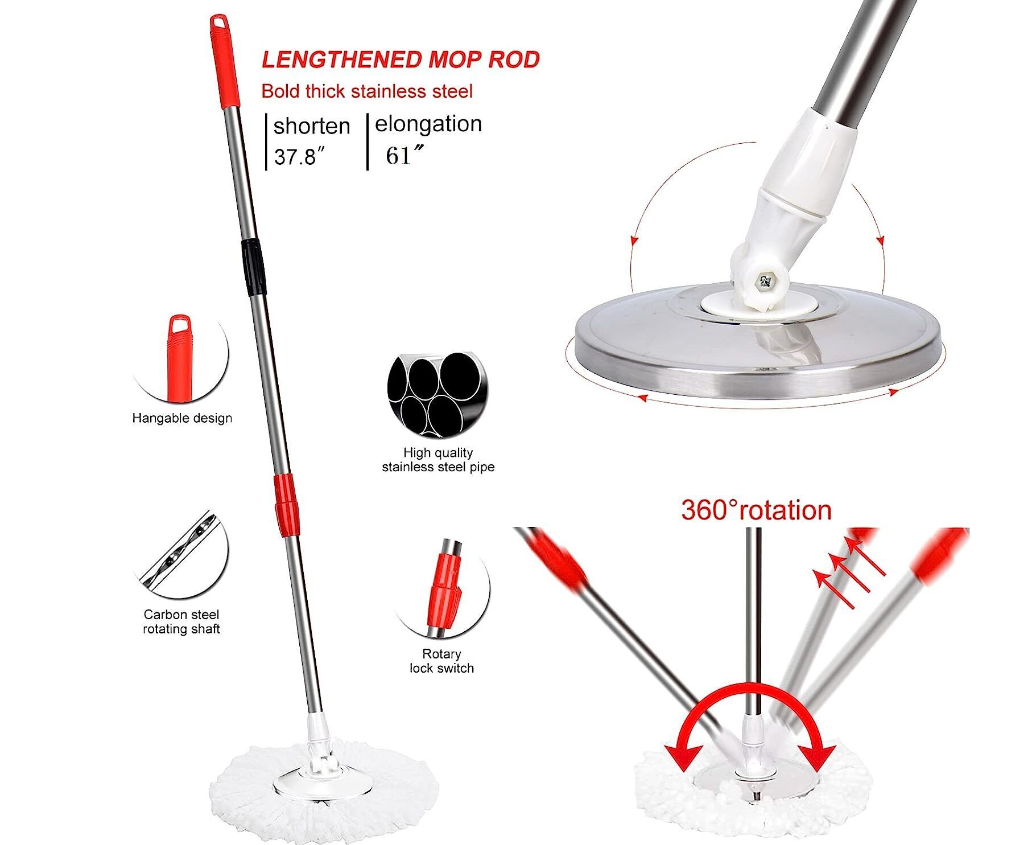 • High quality and upgraded: Our 360-degree mop with bucket is constructed from top-notch stainless steel and polymer. It's rustproof and durable. The swivel mop head is capable of reaching even the smallest corners with ease. An attached carry handle makes it simple to move around.