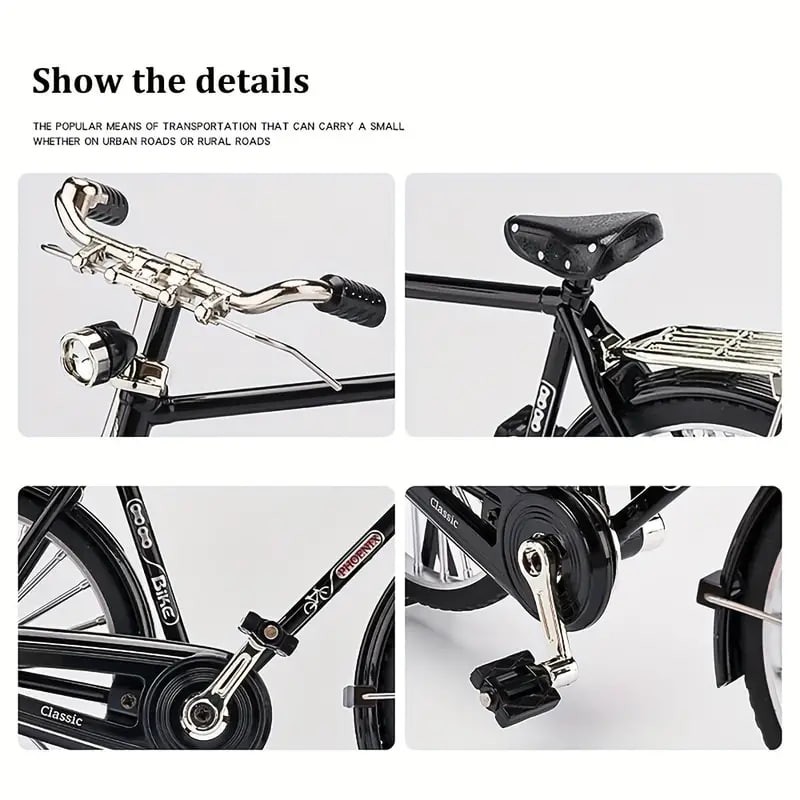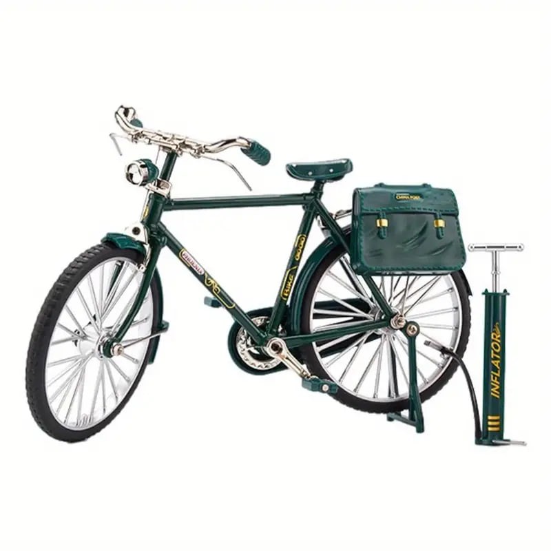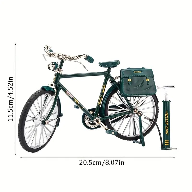 Name: Realistic Bike Model Material: Alloy Size: about 20.5*11.5cm/8.07*4.52inch Color: Black/green Recommend age:0-12 years old Packing List:1 set Retro Bicycle Model Scale