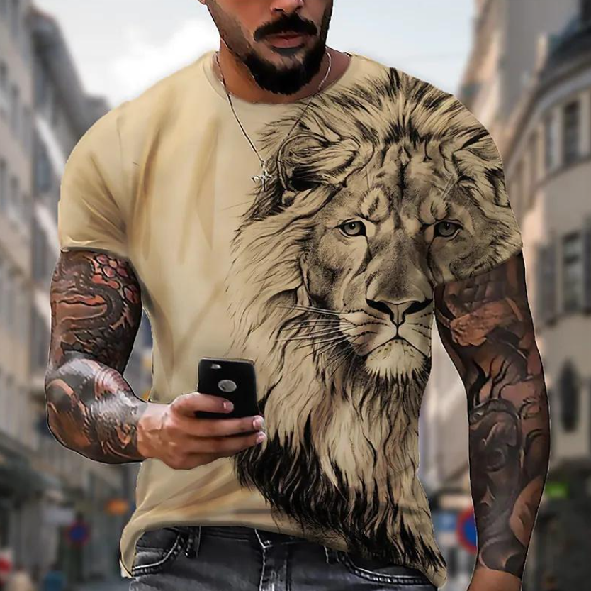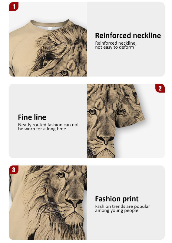 - Captivating 3D printed design: This men's t-shirt features a captivating and lifelike 3D printed image of an animal lion, adding a unique and bold statement to your summer wardrobe.