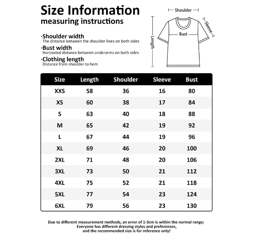 - Available sizes: S, M, L, XL, 2XL, 3XL, 4XL, 5XL, 6XL