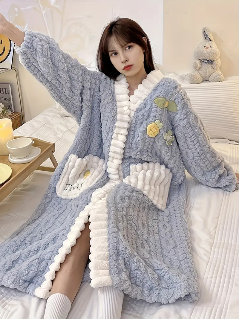 https://merchantstore-my.vip/product/flower-decor-fuzzy-night-robe-cute-long-sleeve-v-neck-robe-with-pockets-womens-sleepwear-N4kKJ