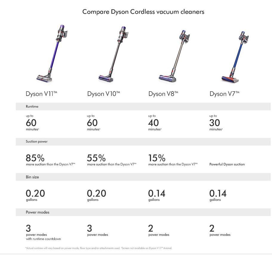 The V10 Animal + has the most powerful suction of any cord-free vacuum. Tested to ASTM F558, against cord-free stick market. Up to 60 minutes' run time when using a non-motorized tool. Lightweight and versatile, to clean right through the home. Instant-release trigger means battery power is only used while it’s cleaning. Requires charging for 3.5 hours minimum before first use. Torque drive cleaner head – our most powerful yet. Up to 20 minutes of fade-free power (in Suction mode II). Drives stiff nylon bristles into carpets to capture deep-down dirt. Powered by the Dyson digital motor V10 and engineered to pick up ground-in dirt and fine dust from hard floors and carpets. Quickly transforms to a handheld vacuum, to clean all around your home and car. Hygienic 'point and shoot' bin emptying. Bin volume 0.2 gallons. 6 month warranty on parts & labor. Designed to deep clean homes with pets. The fully-sealed filtration system traps 99.97% of particles as small as 0.3 microns – expelling cleaner air.