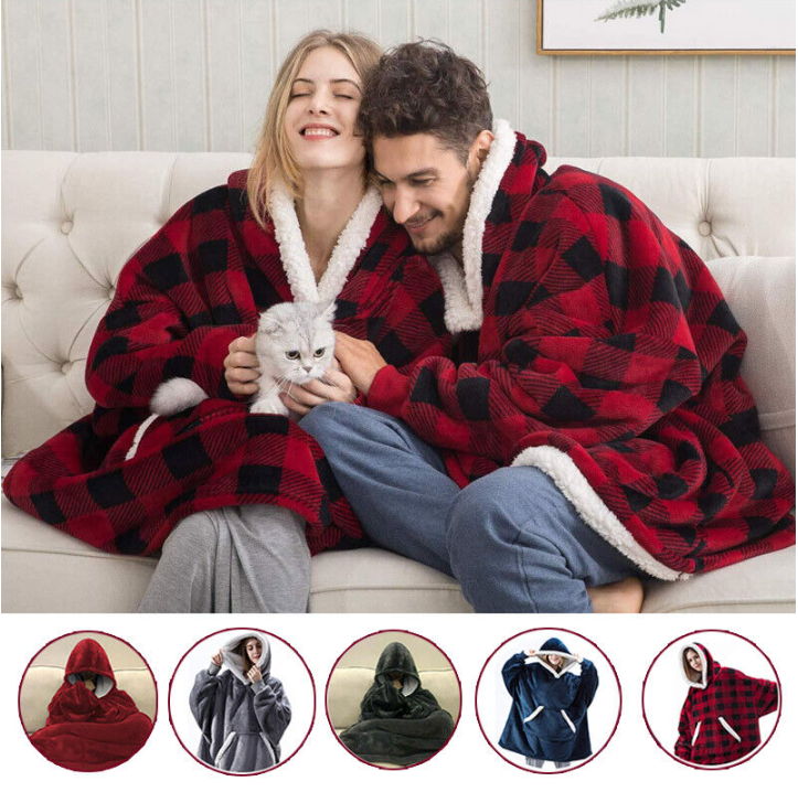 Hoodie Blanket Oversized Adults Kids Chunky Heavy Sherpa Fleece Plush Cosy Warm