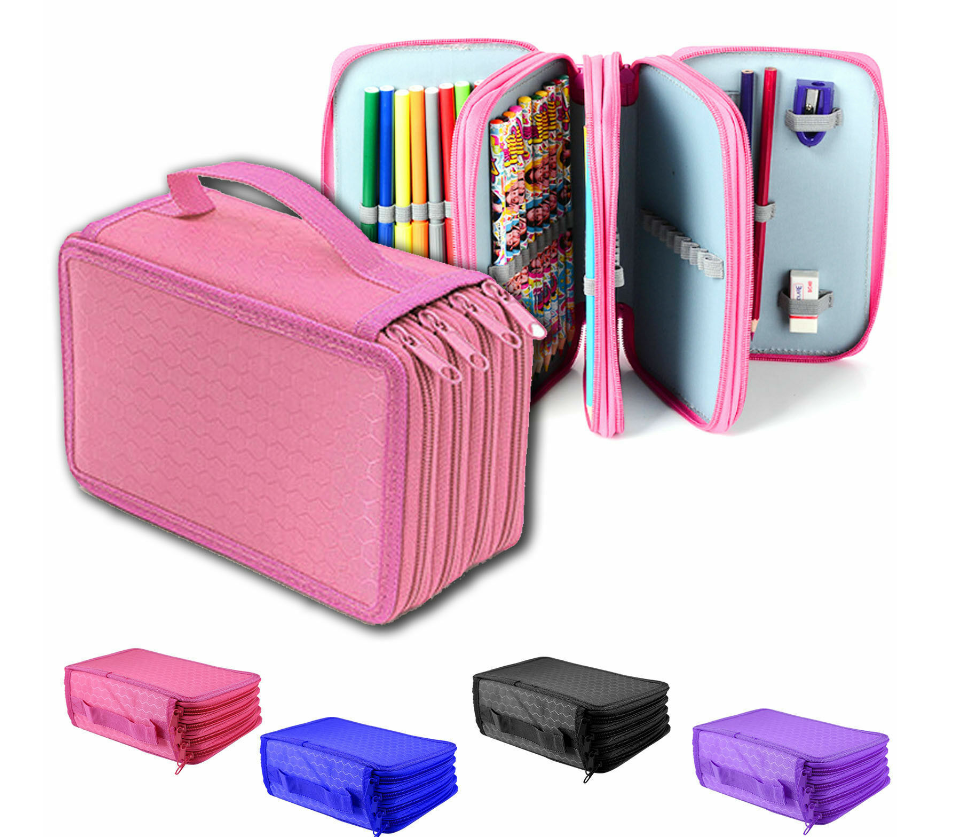 Large Multi-layer Capacity Zipper Pen Pencil Cases Stationery Pouch Bag Case UK