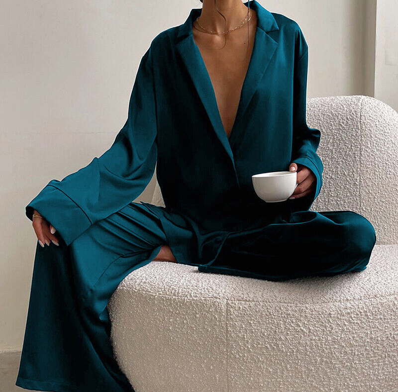Luxury Women Oversized Silk Satin Sleepwear Sexy Pajamas Set Long Sleeves Pyjama
