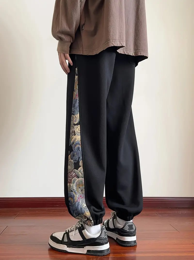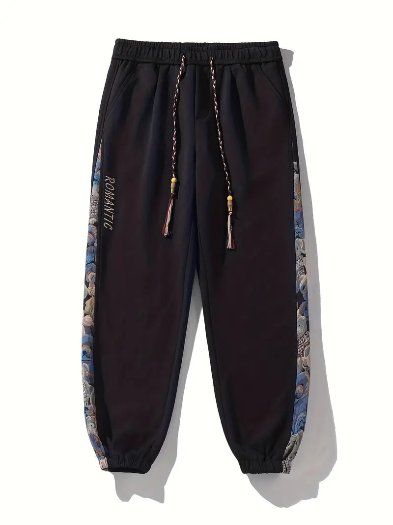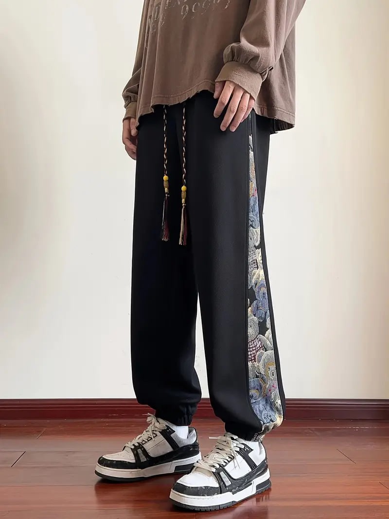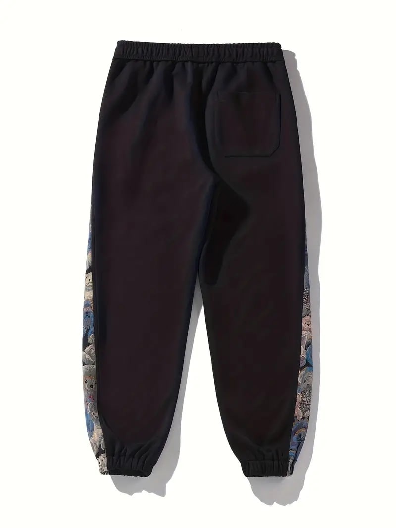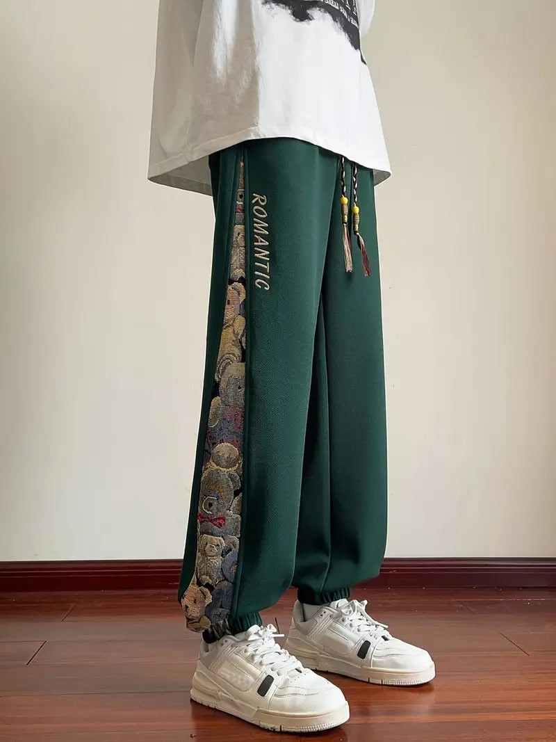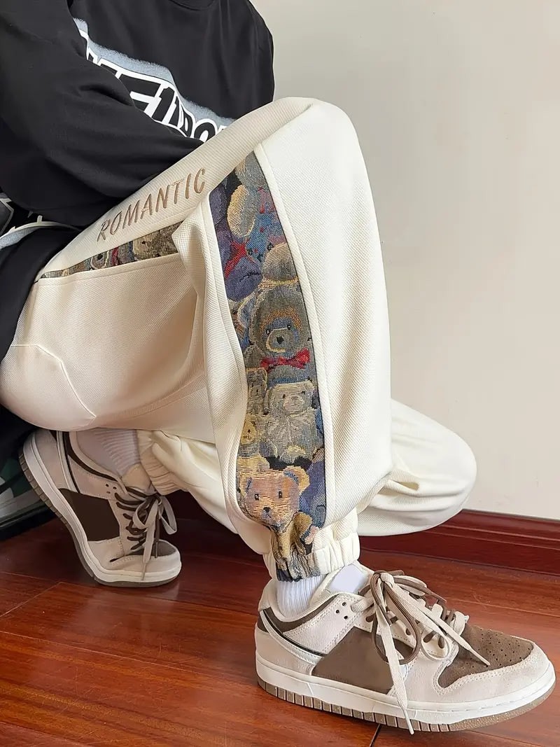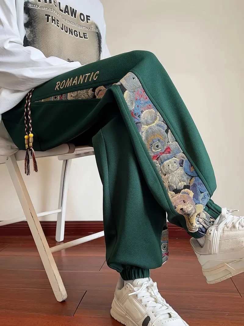 Men's Loose Fit Bear Embroidery Joggers, Casual Stretch Street Style Sports Pants