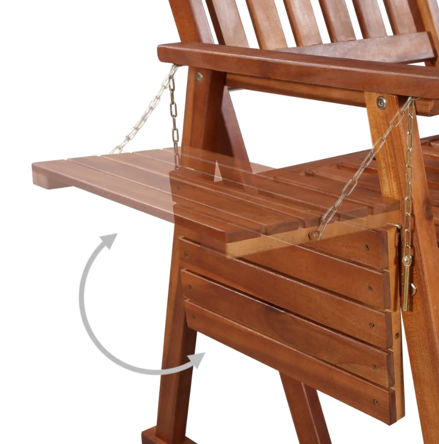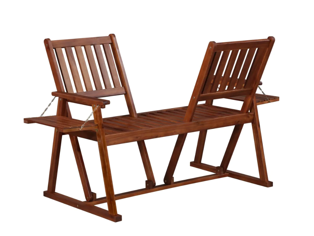 This versatile wooden bench will be an eye-catcher in any garden. The bench features flexible and functionally-designed backrests which make it easy to switch the way you face by just a flip of the backrest. It is also equipped with two platforms on both sides of the armrests which provide a surface for placing various items like books, teacups, etc. Made of solid acacia wood, the bench is sturdy and durable and is easy to clean with a damp cloth. The garden bench is easy to assemble.