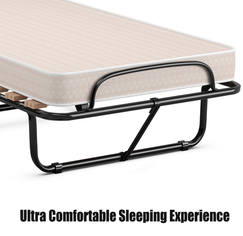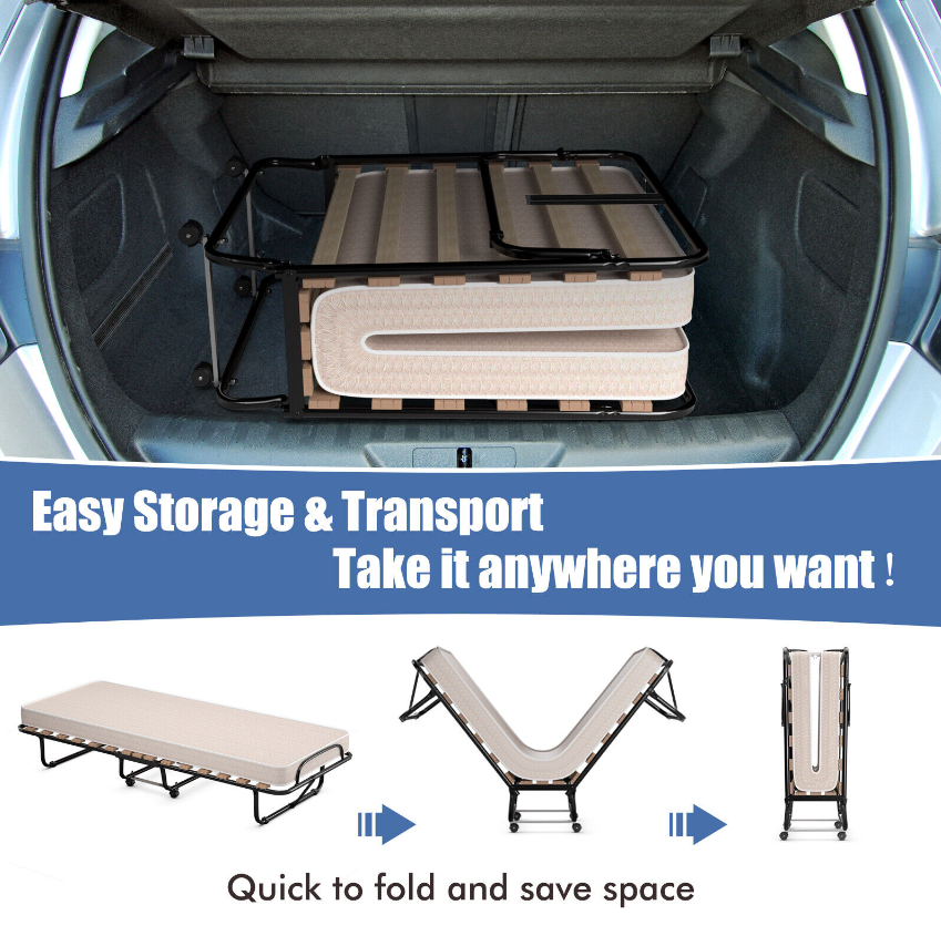 Portable Folding Bed with Memory Foam Mattress Rollaway Cot Made in Italy