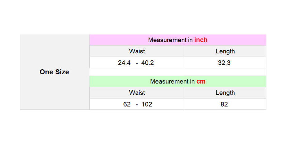 Size: Free Size: Length 82cm, Waist 62-102cm, Lining 45cm