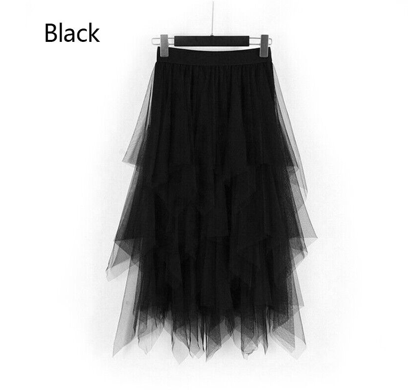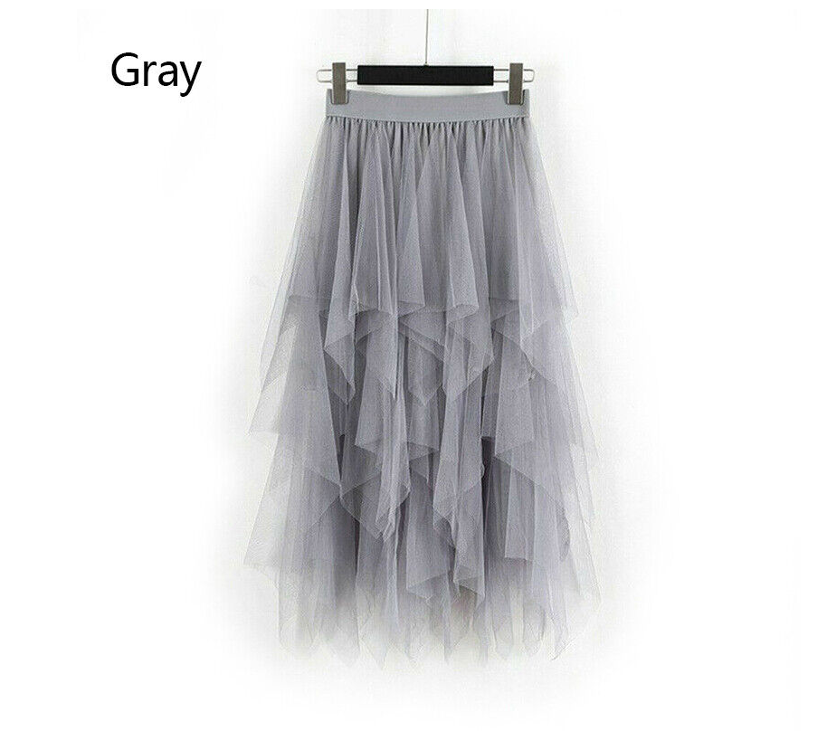 Women Elastic High Waist Tulle Mesh Skirt Ladies Layered Maxi Long Party Dress